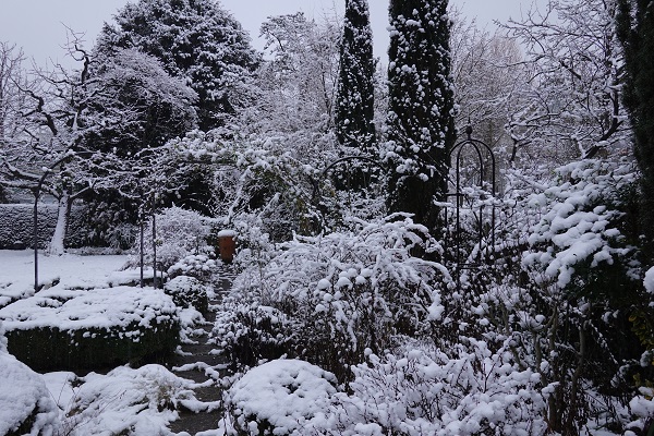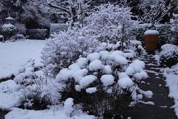 Schnee gibt jedem Garten ein neues und auch anderes Gesicht-die Strukturen kommen dadurch sehr schön zum Tragen. Nun ist es endlich wieder mal weiss im Garten, ein wunderschöner Anblick.